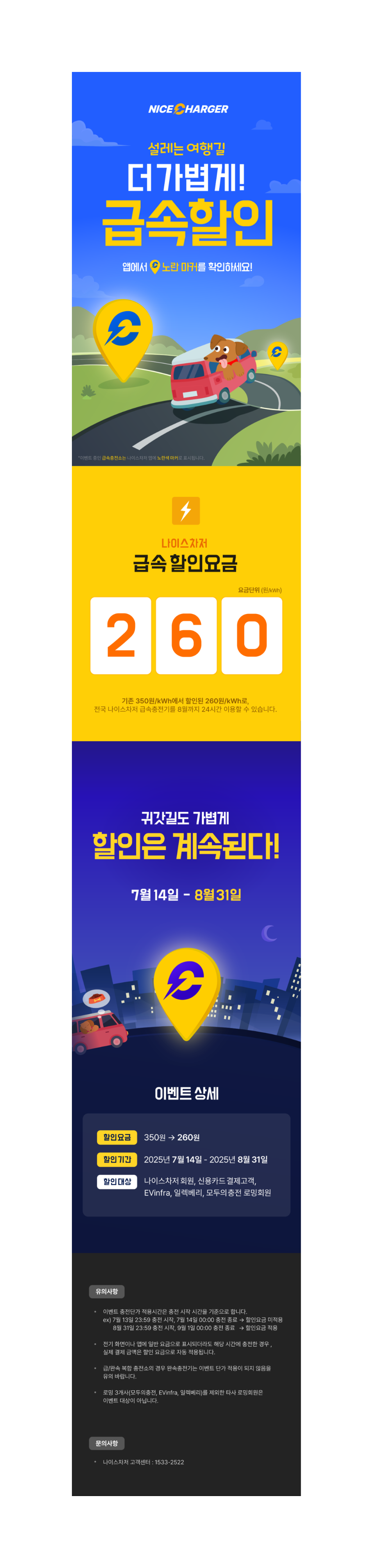 [이벤트] 전국 모든 나이스차저 급속충전기 충전단가 할인 이벤트 (25.07.14~25.08.31) 2025-07-16