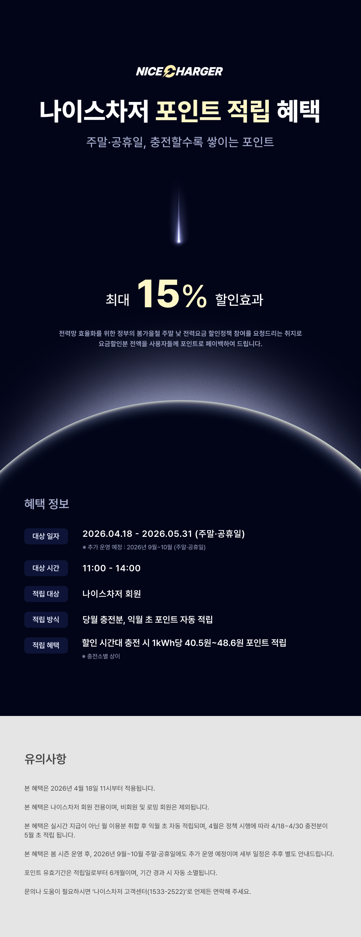 [공지] 주말·공휴일 할인시간대 충전 시, 나이스차저 포인트 페이백 혜택 안내